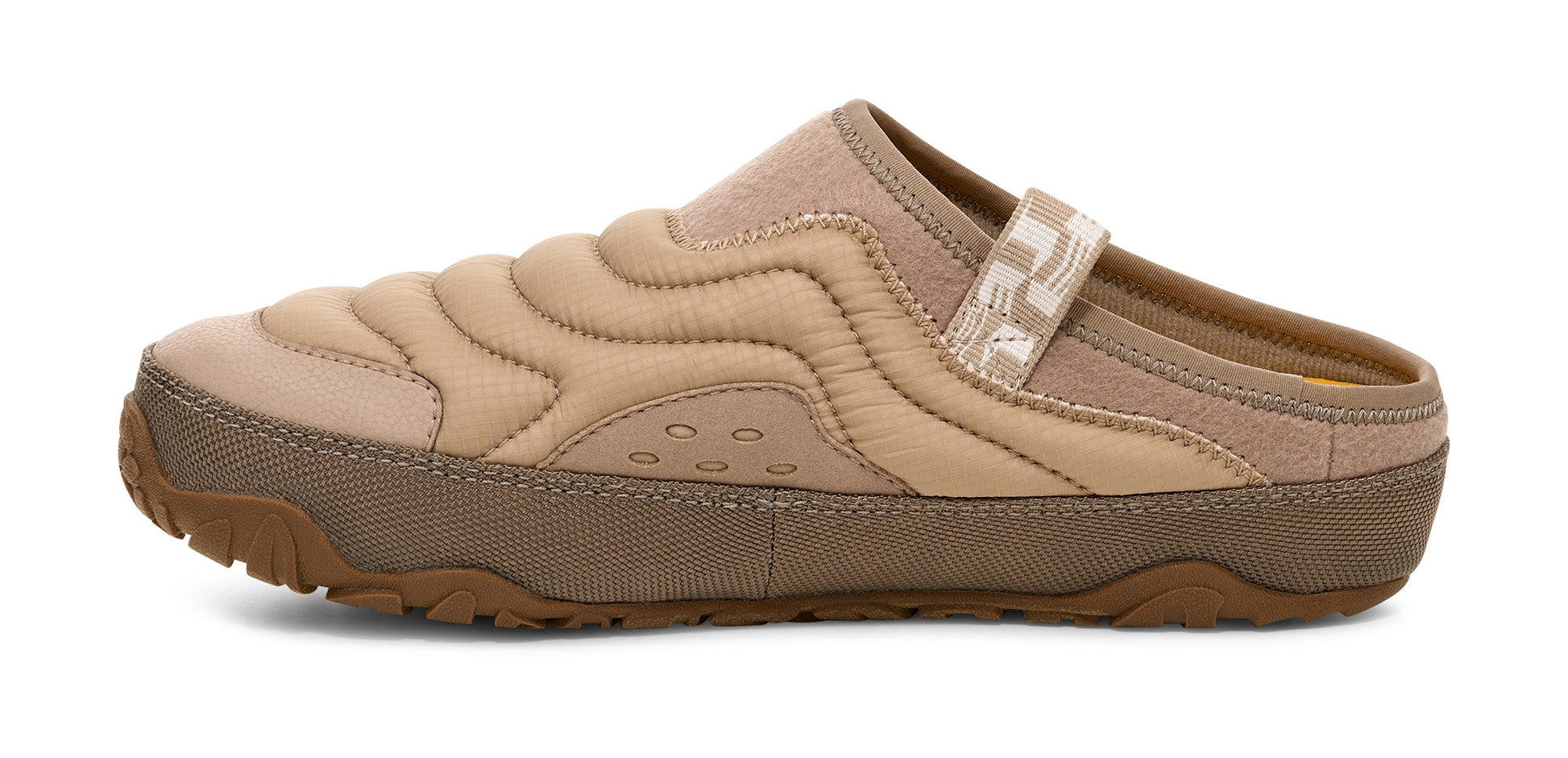 Turning up the dial on comfort with Teva’s new ULTRA-COMF® insole technology and designed with slip-on ease, the ReEmber Terrain is the perfect post-adventure companion. The rugged outsole is outfitted for enhanced traction, offering the comfort of a slipper with the durability of an outdoor shoe. Sporting a quilted, cozy upper inspired by topographic lines, this next-level lounge slip-on is finished with a trusty loop to hook onto your backpack for easy travel.